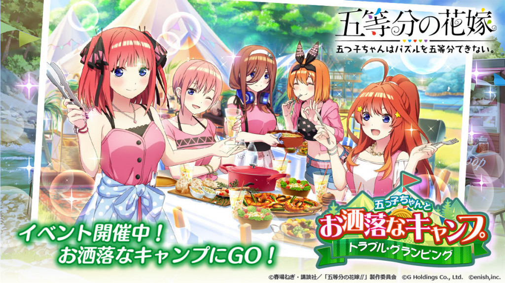 アニメ「五等分の花嫁」初のゲームアプリ 『五等分の花嫁 五つ子ちゃんはパズルを五等分できない。』 国内累計ダウンロード数700万を突破! ~新イベント「五つ子ちゃんとお洒落なキャンプ ~トラブル・グランピング~」開催!~